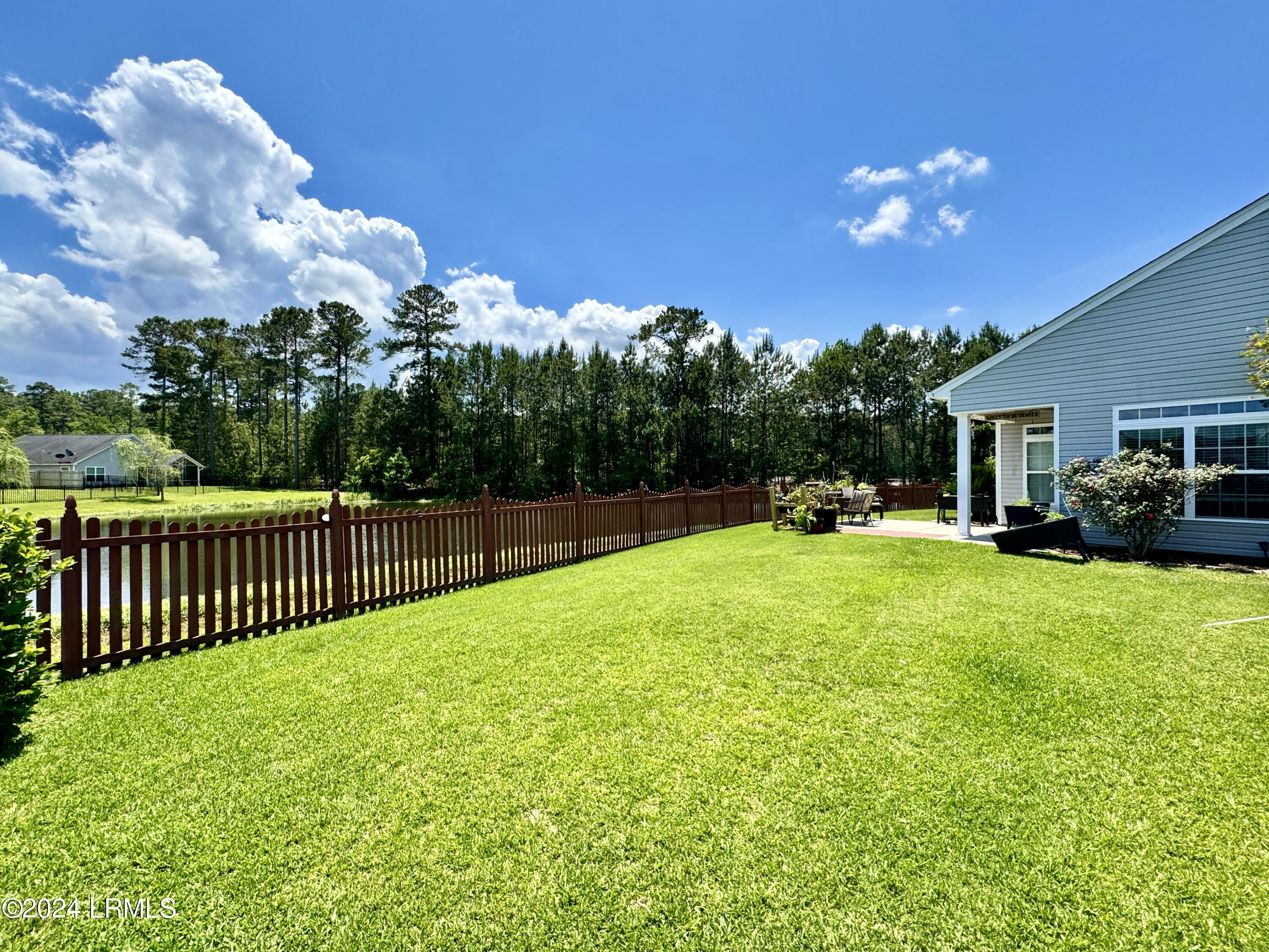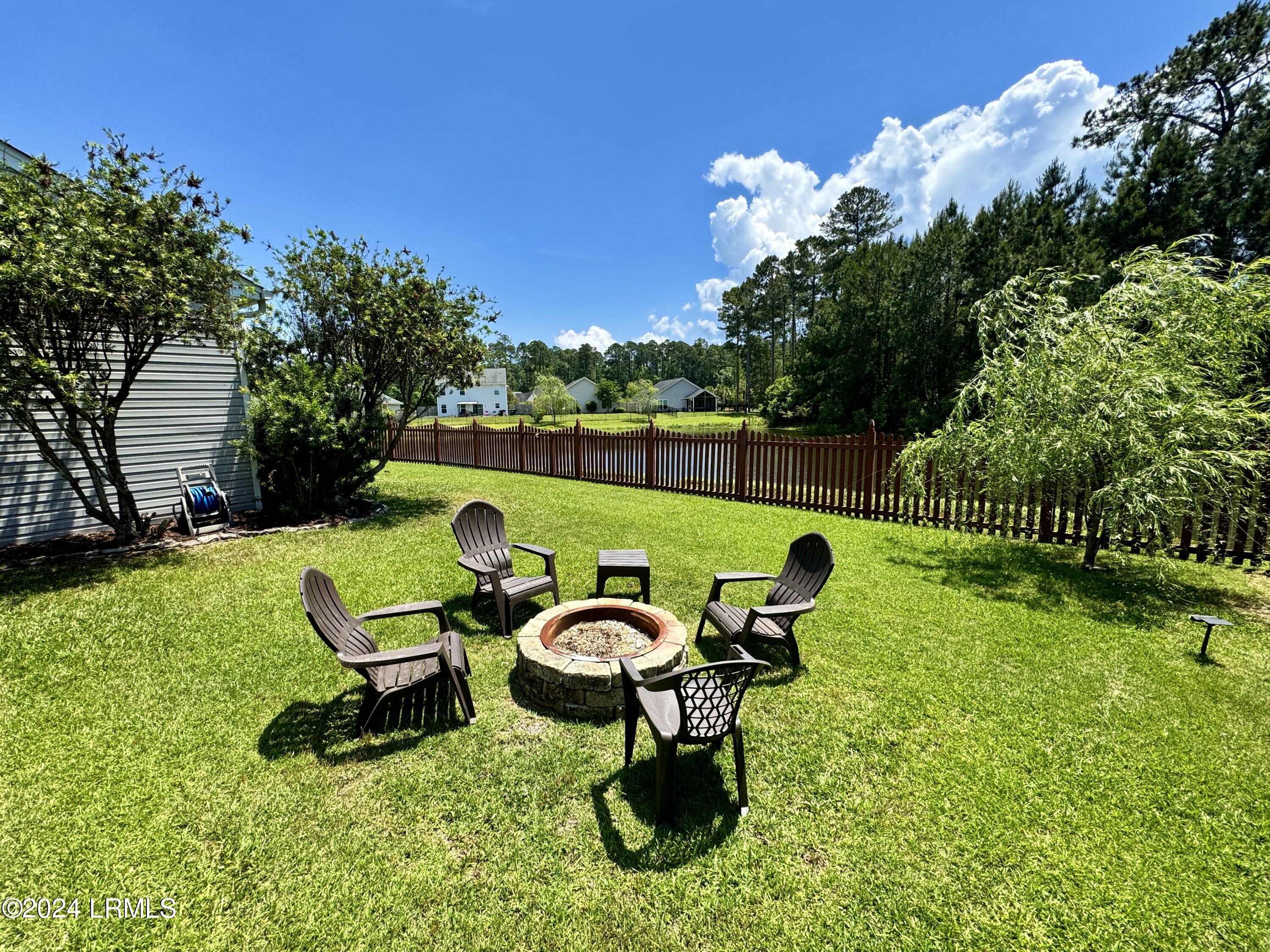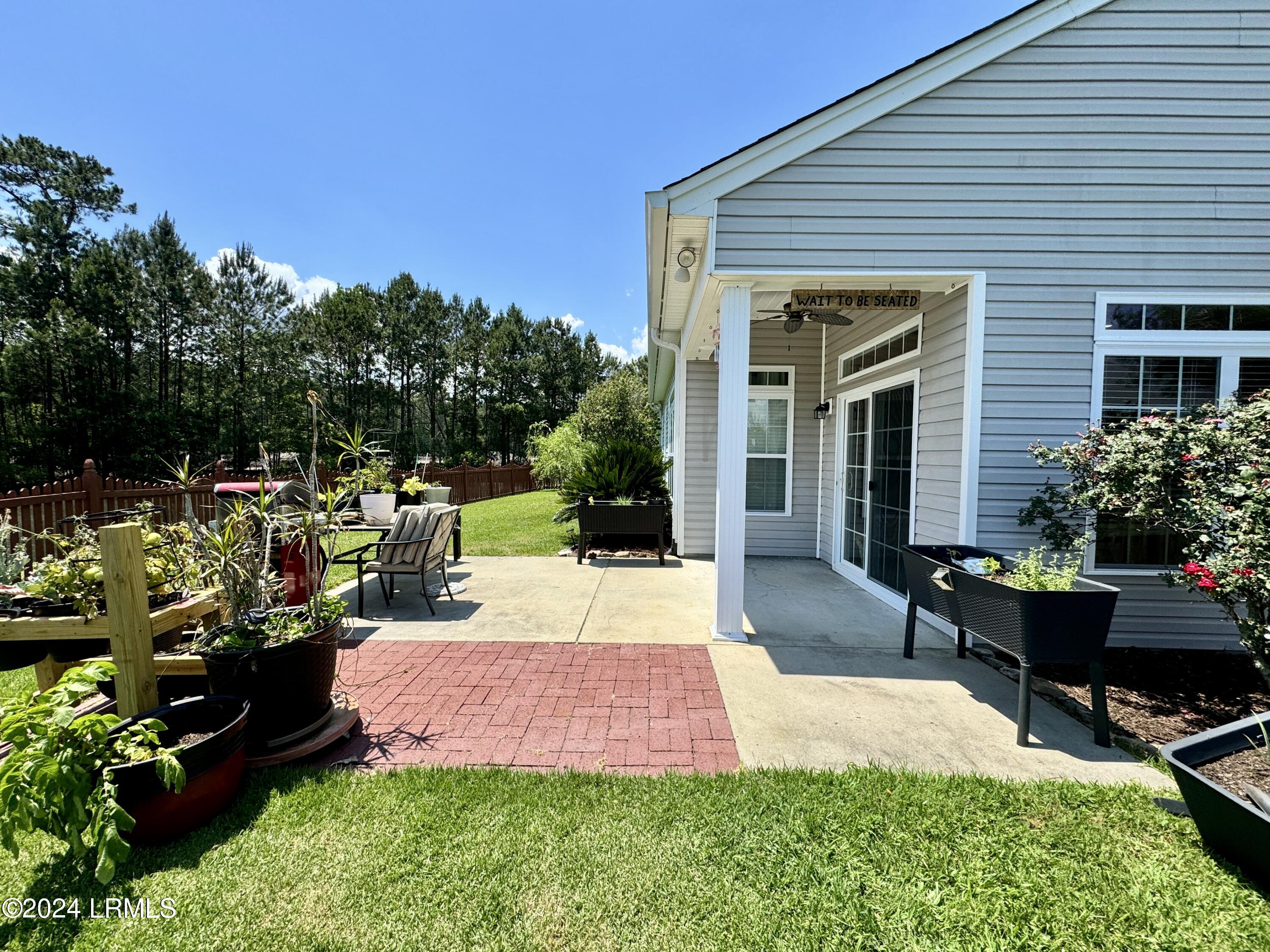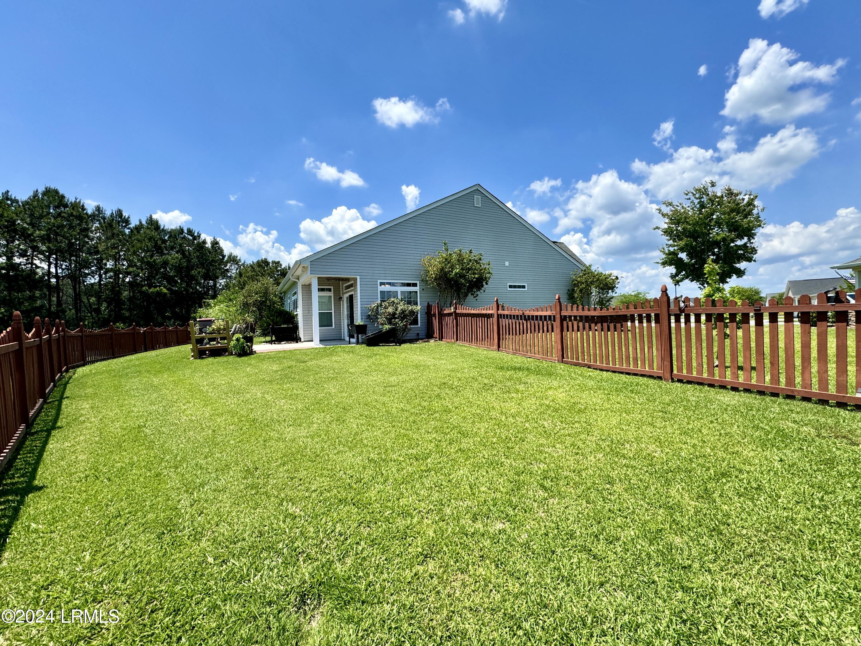 Nestled on a .23-acre lot with serene lagoon views, this meticulously maintained home offers modern comfort & tranquility. Enjoy an oversized fenced yard with a large patio and covered porch. Inside, find an open split floorplan with soaring 10-foot ceilings and a beautiful kitchen with 2yr old appliances! Relax in the spacious primary bathroom with a large jacuzzi tub & separate shower with dual showerheads. Features include maintenance-free stone & vinyl siding, newer HVAC from 2022, & a 2-car epoxy floor garage with added storage. With proximity to Bluffton, Hilton Head, Beaufort, & Savannah, plus low HOA, this sanctuary awaits!