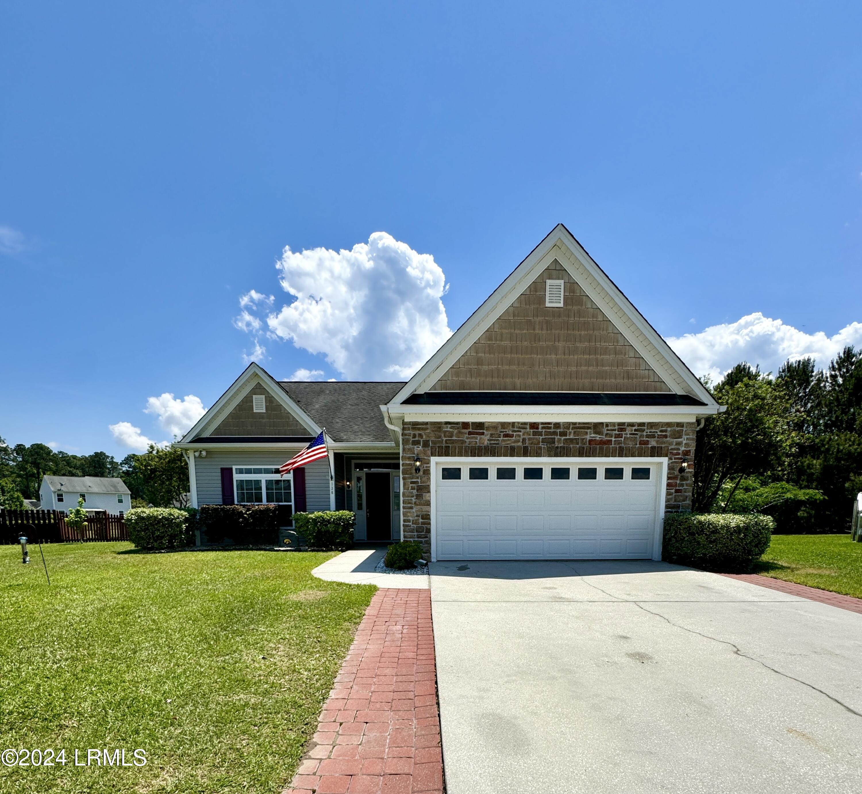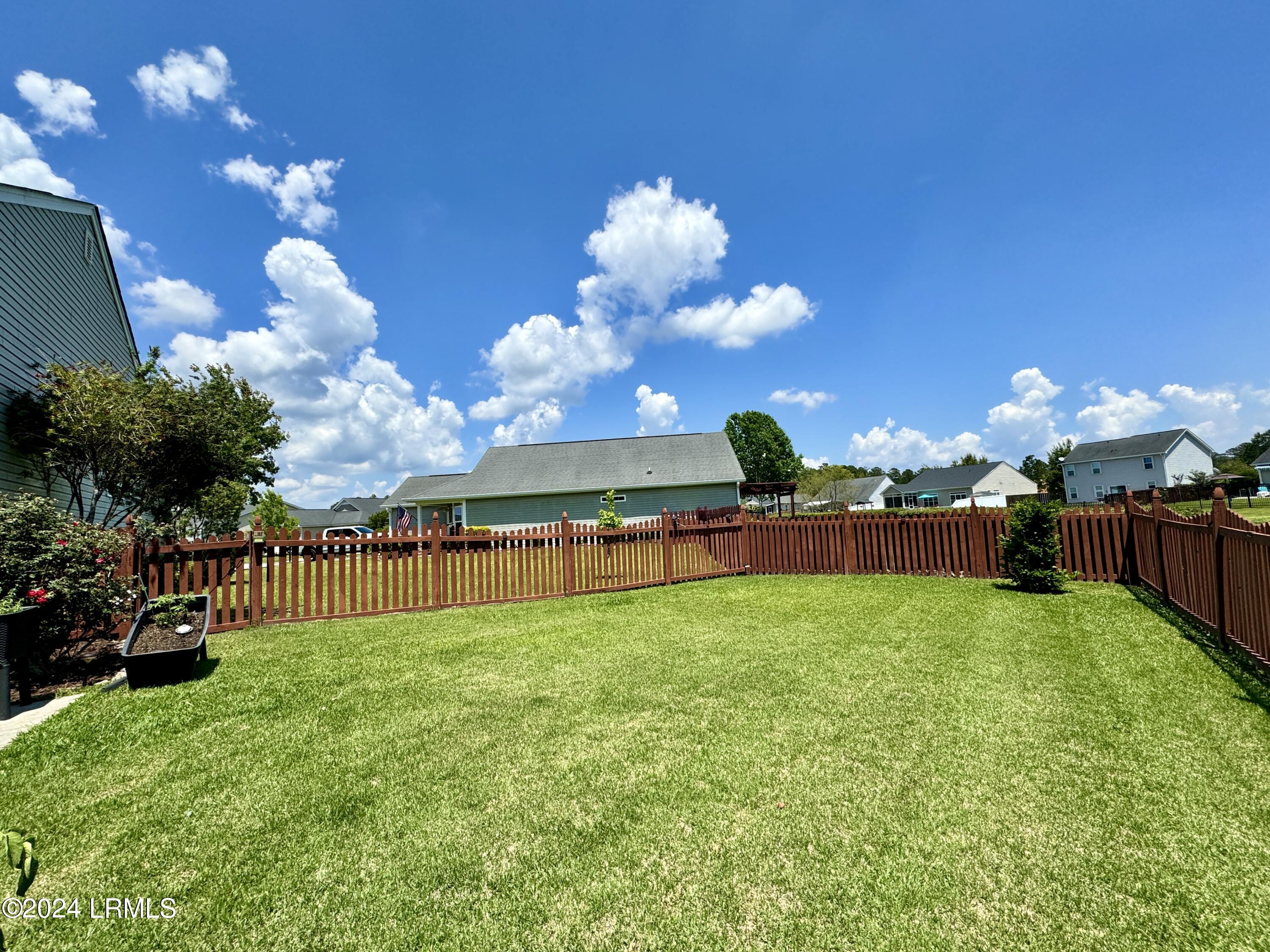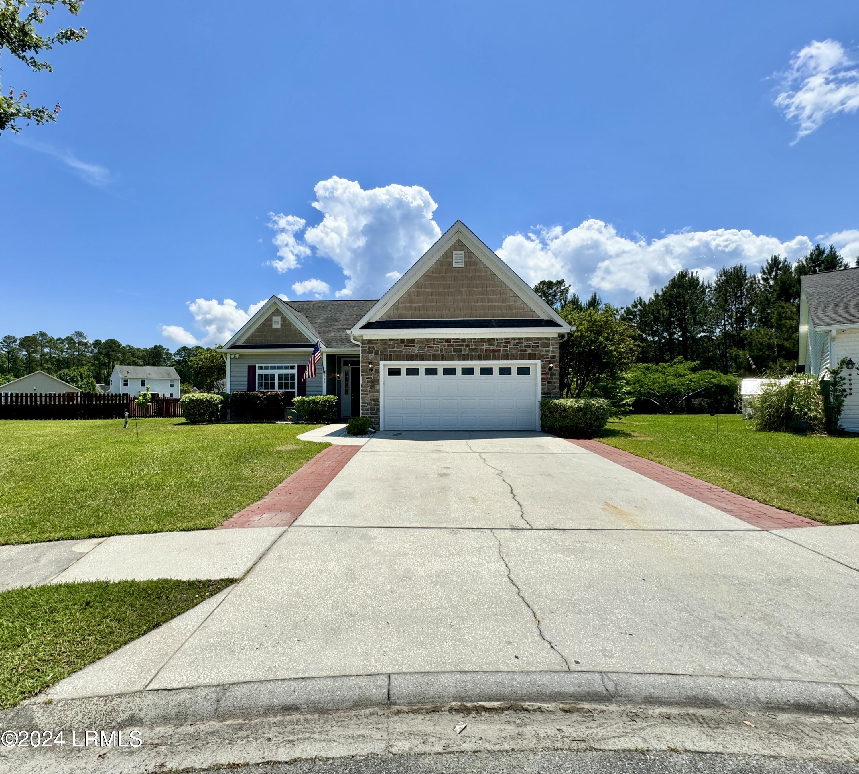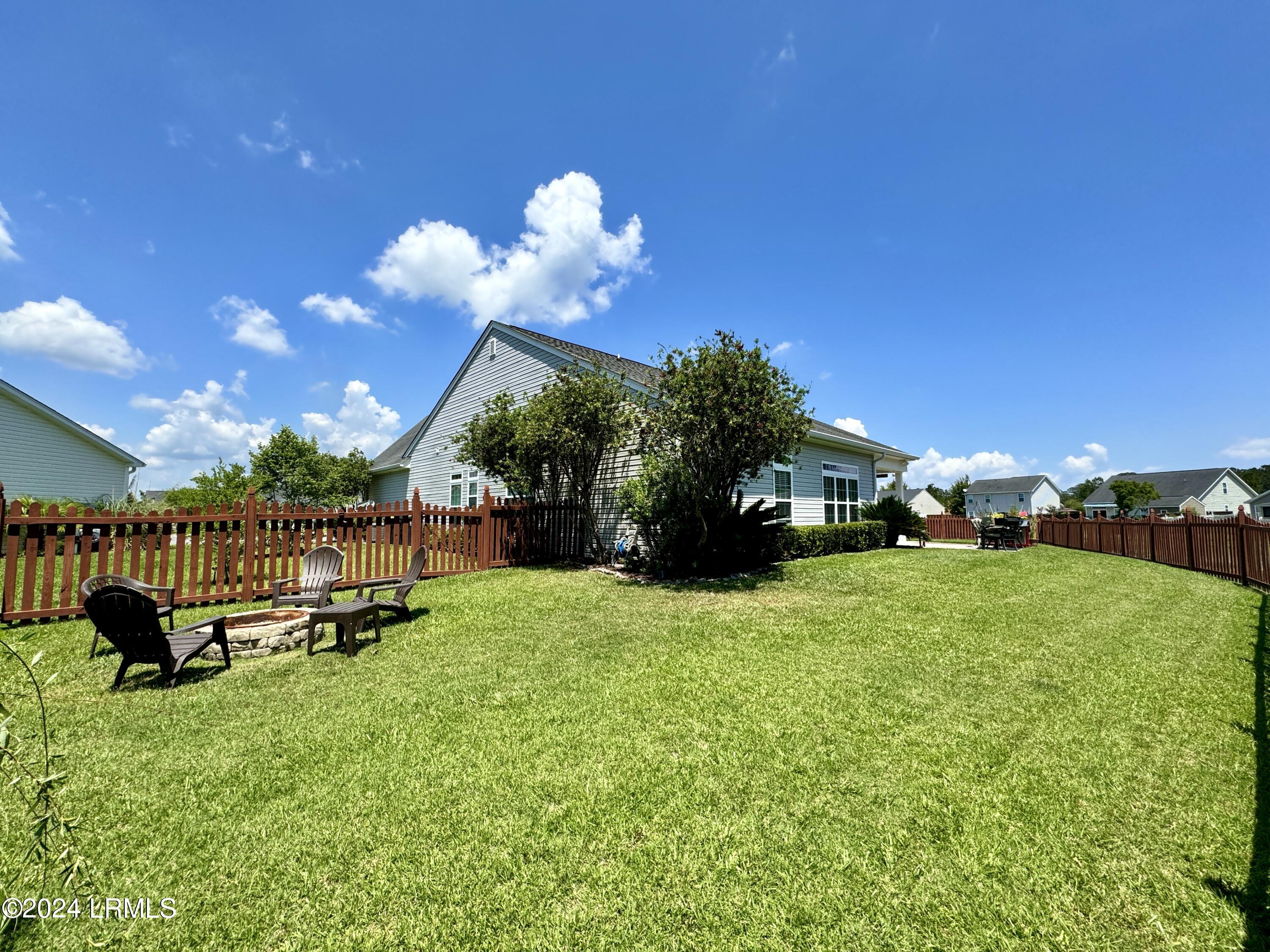 Nestled on a .23-acre lot with serene lagoon views, this meticulously maintained home offers modern comfort & tranquility. Enjoy an oversized fenced yard with a large patio and covered porch. Inside, find an open split floorplan with soaring 10-foot ceilings and a beautiful kitchen with 2yr old appliances! Relax in the spacious primary bathroom with a large jacuzzi tub & separate shower with dual showerheads. Features include maintenance-free stone & vinyl siding, newer HVAC from 2022, & a 2-car epoxy floor garage with added storage. With proximity to Bluffton, Hilton Head, Beaufort, & Savannah, plus low HOA, this sanctuary awaits!