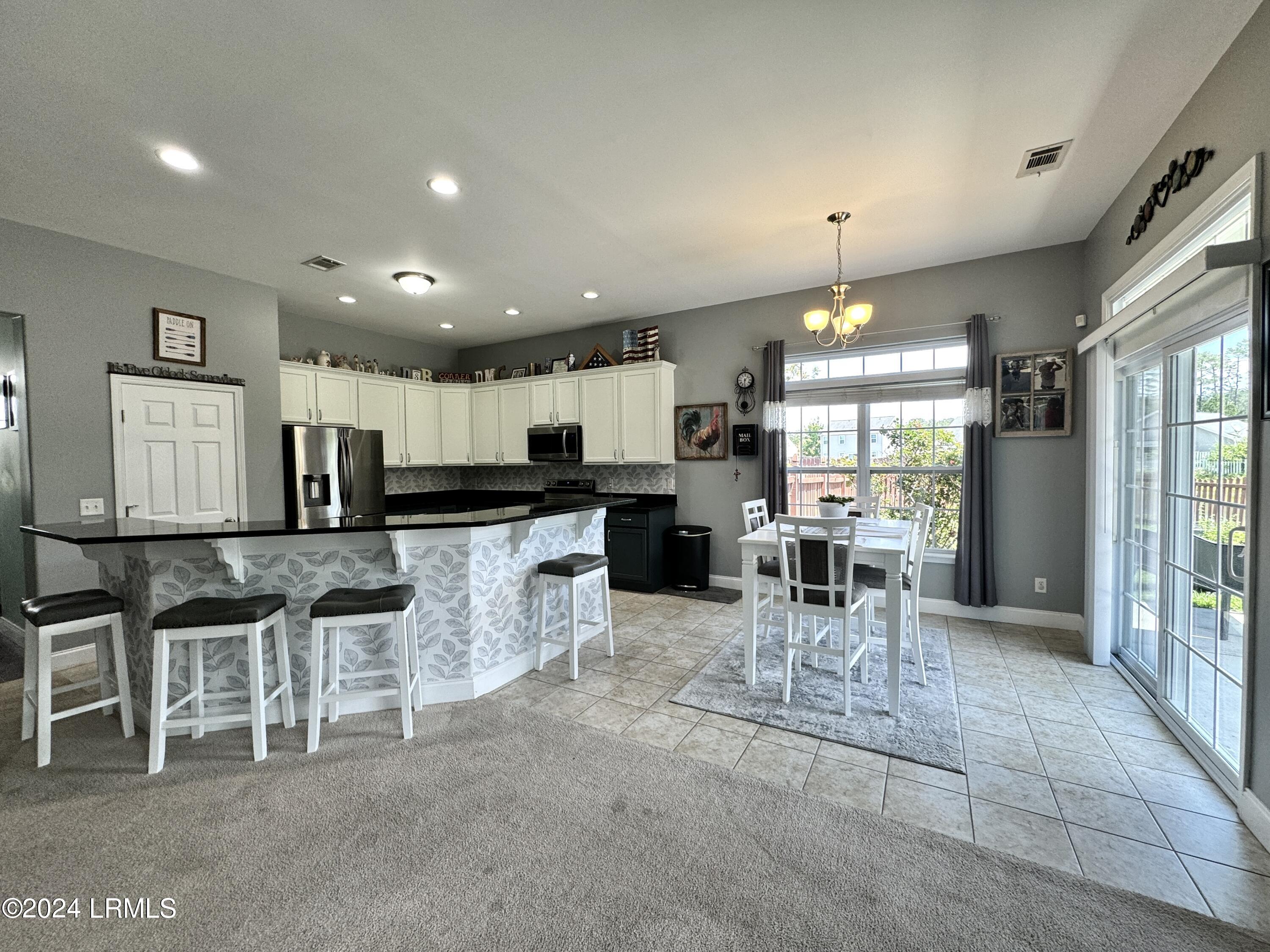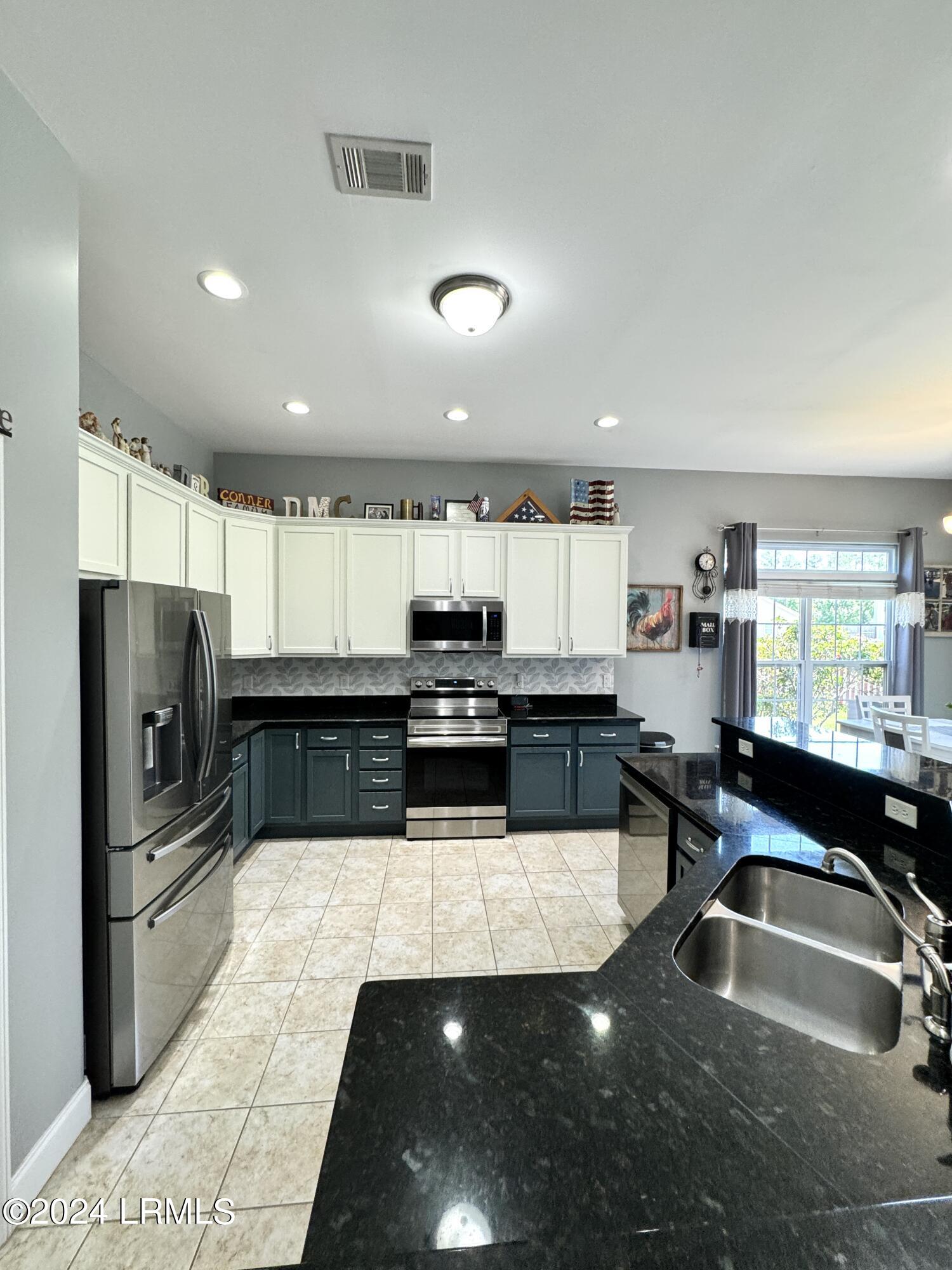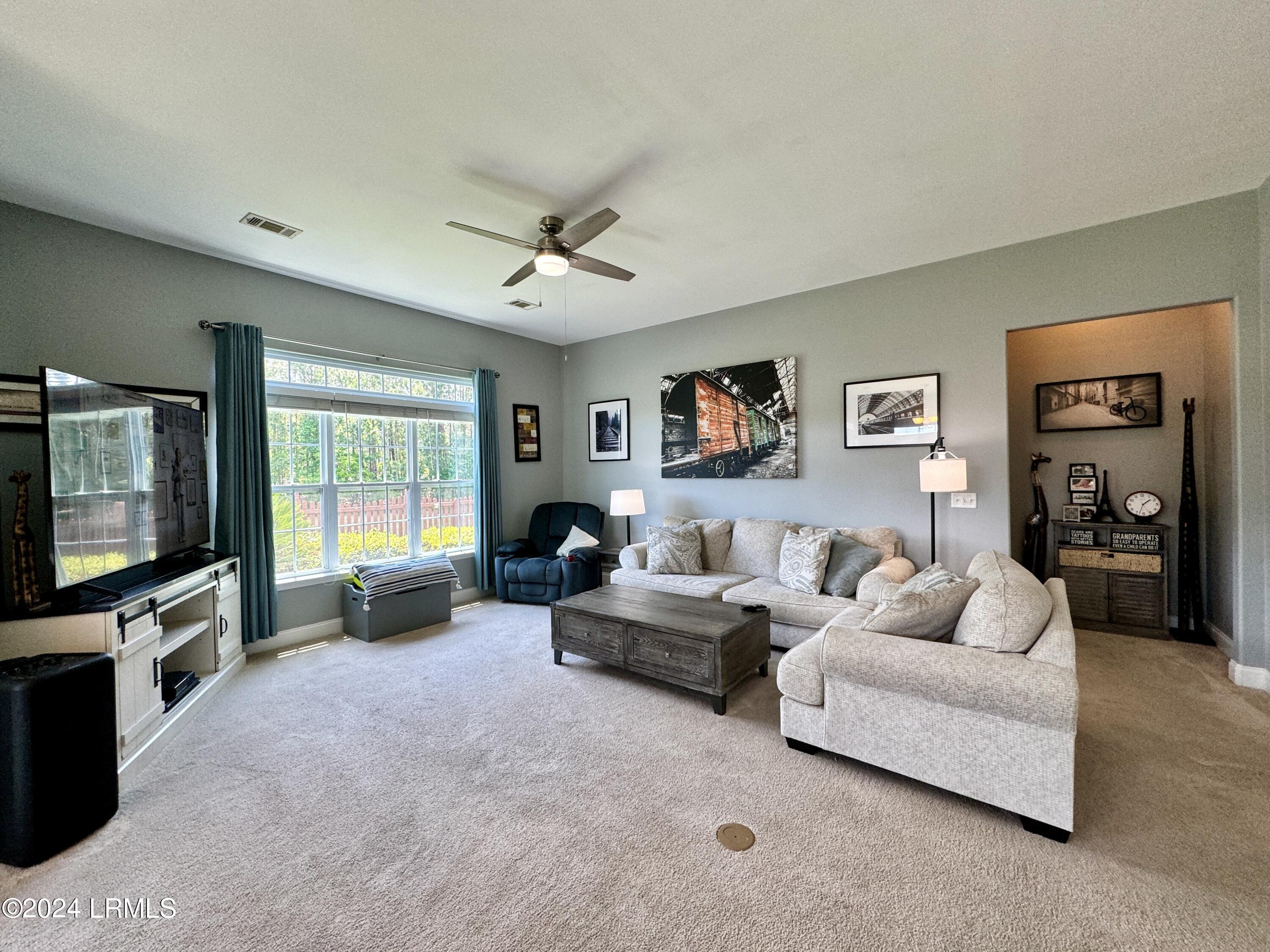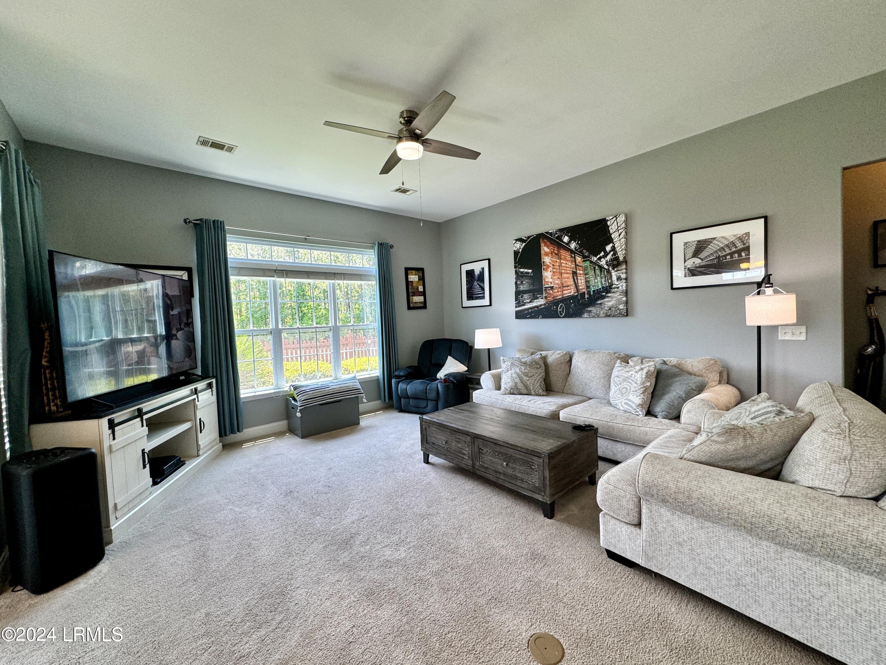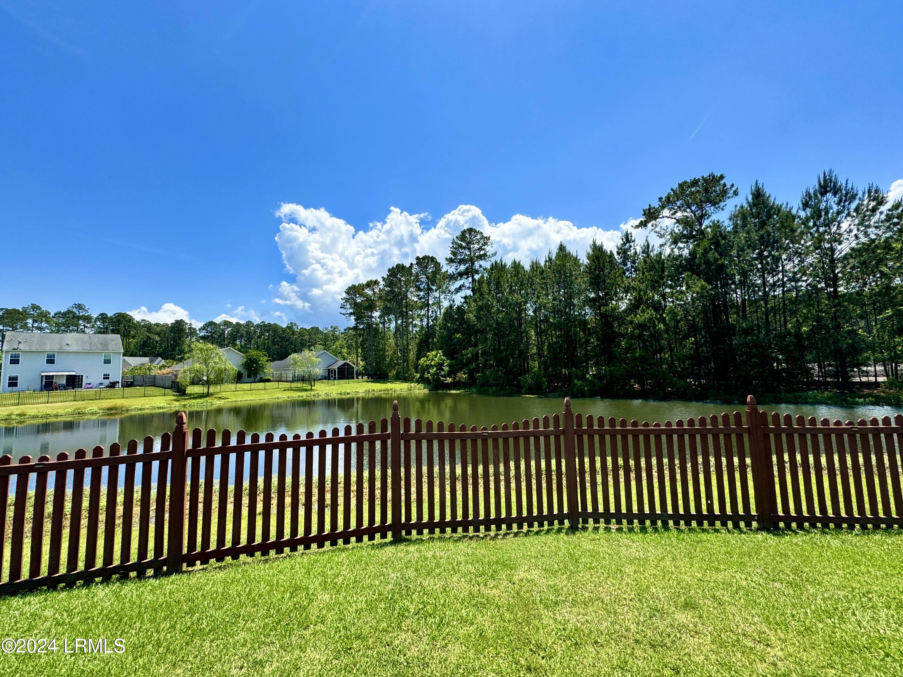 Nestled on a .23-acre lot with serene lagoon views, this meticulously maintained home offers modern comfort & tranquility. Enjoy an oversized fenced yard with a large patio and covered porch. Inside, find an open split floorplan with soaring 10-foot ceilings and a beautiful kitchen with 2yr old appliances! Relax in the spacious primary bathroom with a large jacuzzi tub & separate shower with dual showerheads. Features include maintenance-free stone & vinyl siding, newer HVAC from 2022, & a 2-car epoxy floor garage with added storage. With proximity to Bluffton, Hilton Head, Beaufort, & Savannah, plus low HOA, this sanctuary awaits!