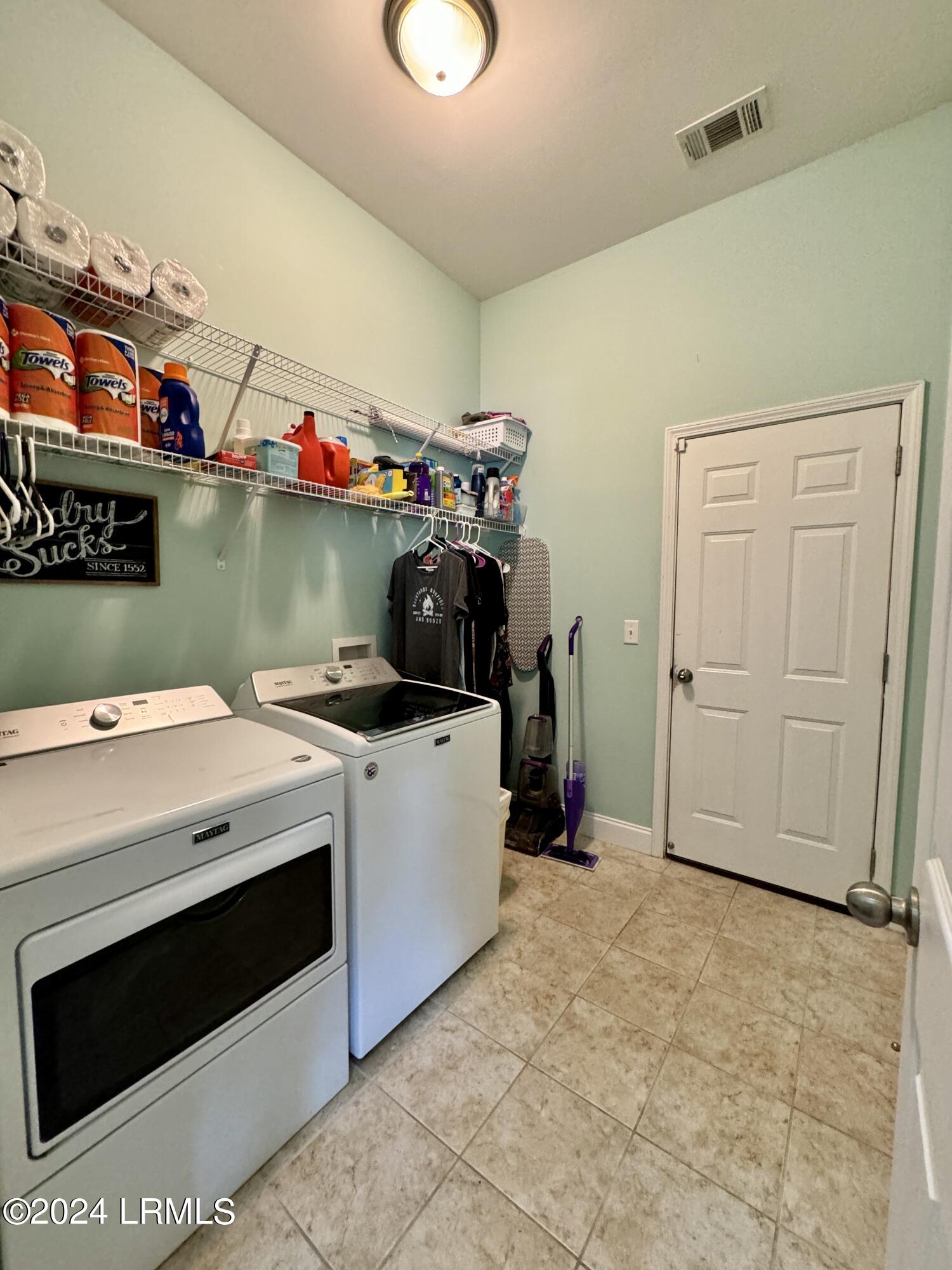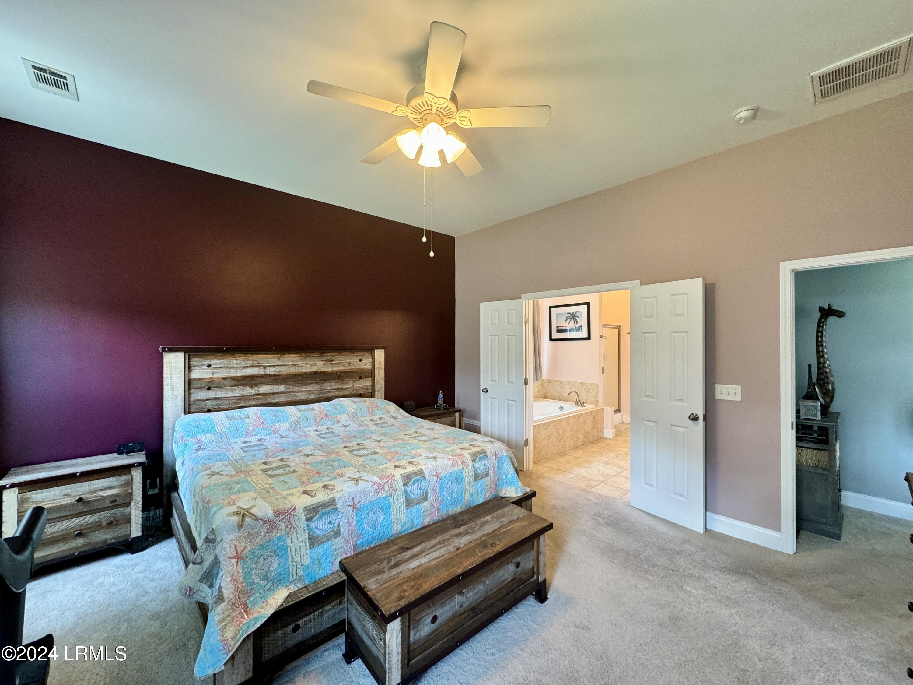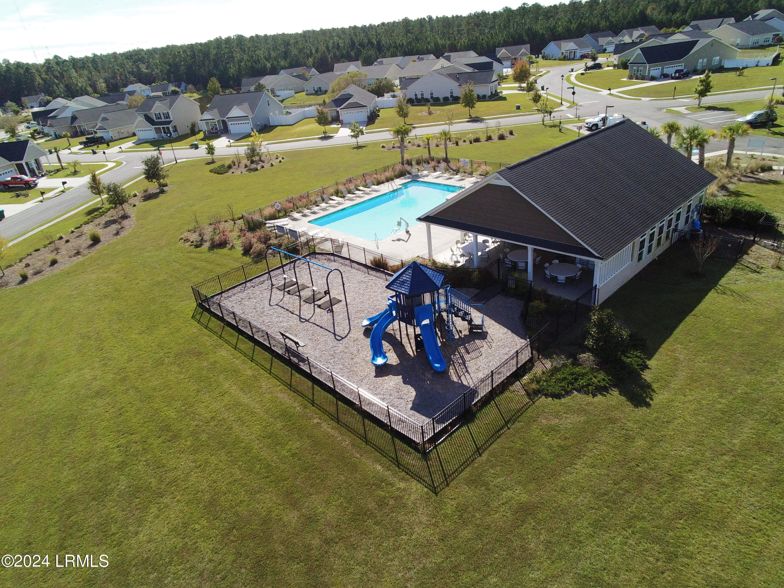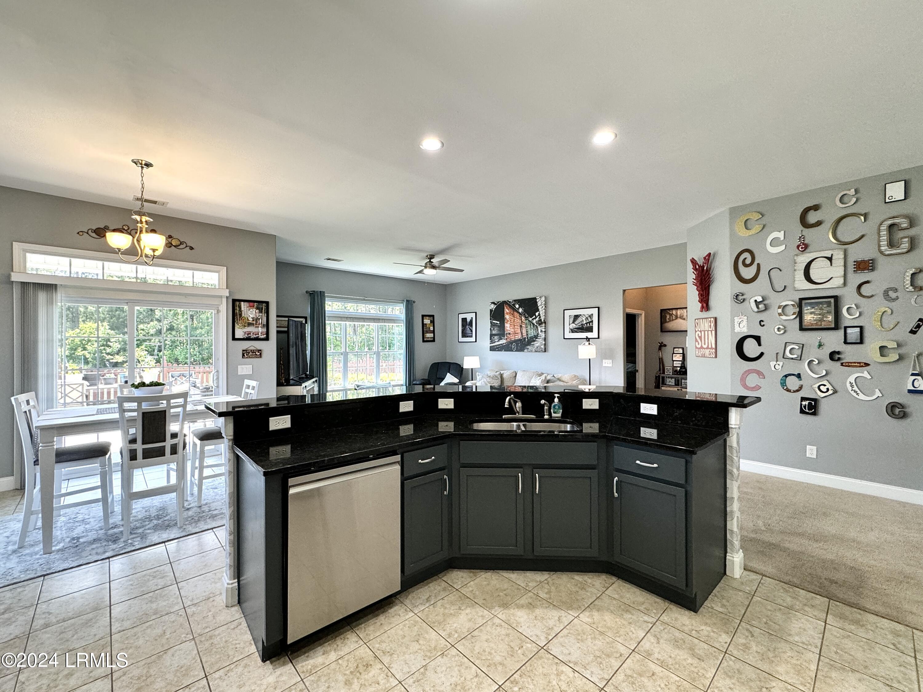 Nestled on a .23-acre lot with serene lagoon views, this meticulously maintained home offers modern comfort & tranquility. Enjoy an oversized fenced yard with a large patio and covered porch. Inside, find an open split floorplan with soaring 10-foot ceilings and a beautiful kitchen with 2yr old appliances! Relax in the spacious primary bathroom with a large jacuzzi tub & separate shower with dual showerheads. Features include maintenance-free stone & vinyl siding, newer HVAC from 2022, & a 2-car epoxy floor garage with added storage. With proximity to Bluffton, Hilton Head, Beaufort, & Savannah, plus low HOA, this sanctuary awaits!