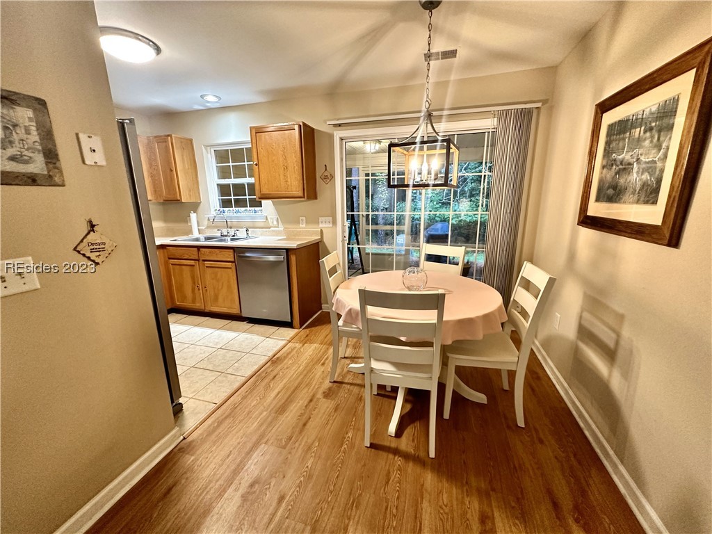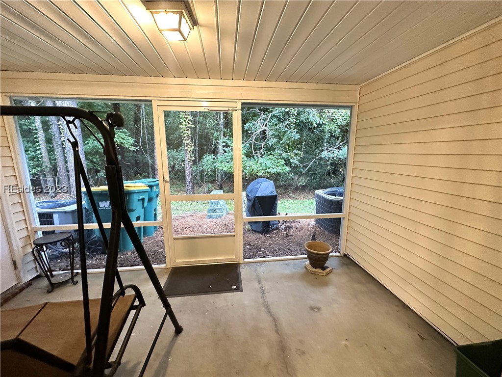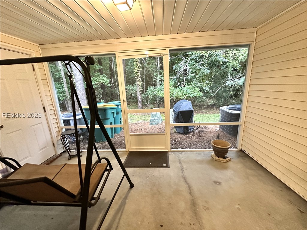 This 2 Bedroom 1.5 Bath home is ready for new owners! Stainless steel Kitchen appliances installed 8/23/23!! New Roof 2022. Move right in & relax in your private screened porch w/ wooded views. Quiet subdivision w/ 2 parking spots minutes away from shopping, restaurants, HHI, Savannah, & Beaufort. Community amenities include swimming pool & trails for biking or walking. Maintenance free HOA includes exterior maintenance, lawn/landscaping, insurance, water/sewer, exterior pest control & trash collection! Seller has paid recent Insurance assessment in full! Welcome Home!