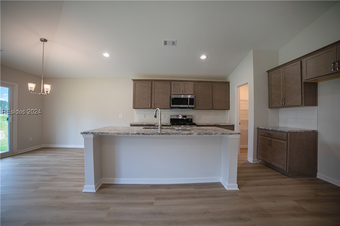 The Aspen plan by Smith Family Homes is move-in ready in Heritage at New Riverside. This 1,733 sqft home located on lot 7051 has 3 bedrooms & 2 bathrooms. It features an open concept kitchen and living area with an 11-foot vaulted ceiling, large kitchen island, and walk in pantry. Included are stainless steel appliances (gas range, microwave, dishwasher), LVP throughout the common areas and bedrooms, and a covered back porch. Current price of $397,940 reflects a 5% reduction from the regular price of $$418,880. Pricing is good for contracts written by 11/30/24. Stock photos shown; to be similar but not identical.