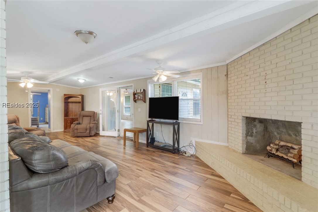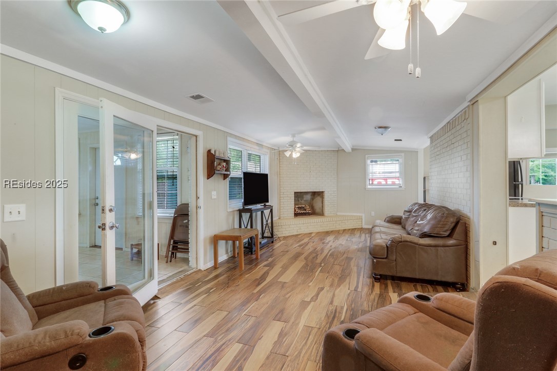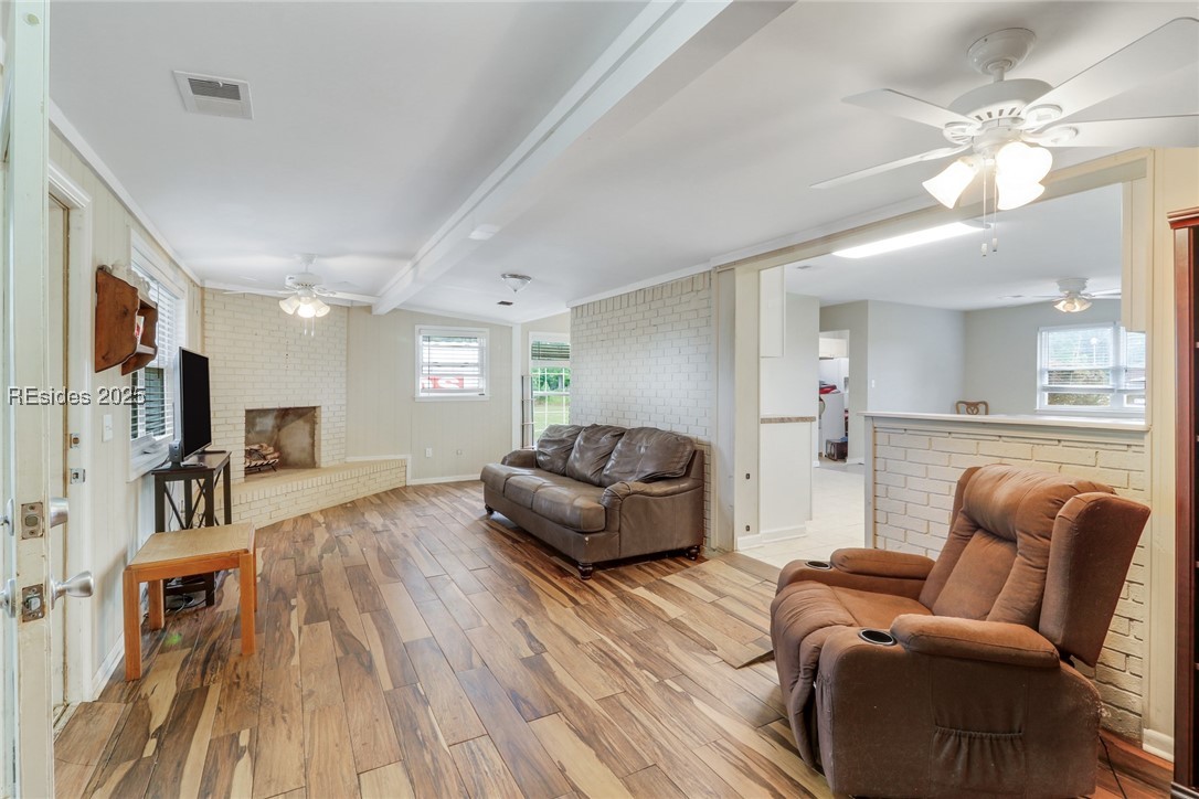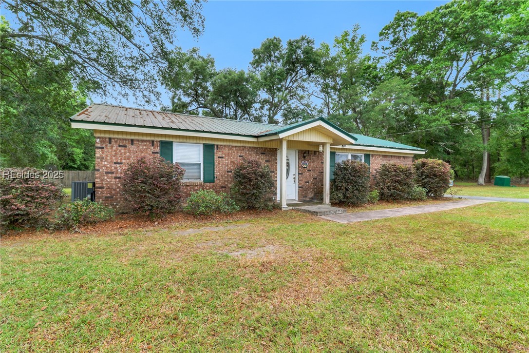 PRICED TO SELL! This charming 3-bedroom, 3-bath brick ranch is situated on a spacious .70 acre lot with mature oak trees. The home features a Carolina room with a vaulted ceiling and a separate HVAC unit, offering a perfect retreat. The den includes a cozy wood-burning fireplace, ideal for cooler evenings. Outside, the fenced-in area provides plenty of space for outdoor activities and would be perfect for pets or animals to roam freely. With a durable metal roof, this home combines comfort, privacy, and convenience. Property being sold "as is", inspections welcomed.