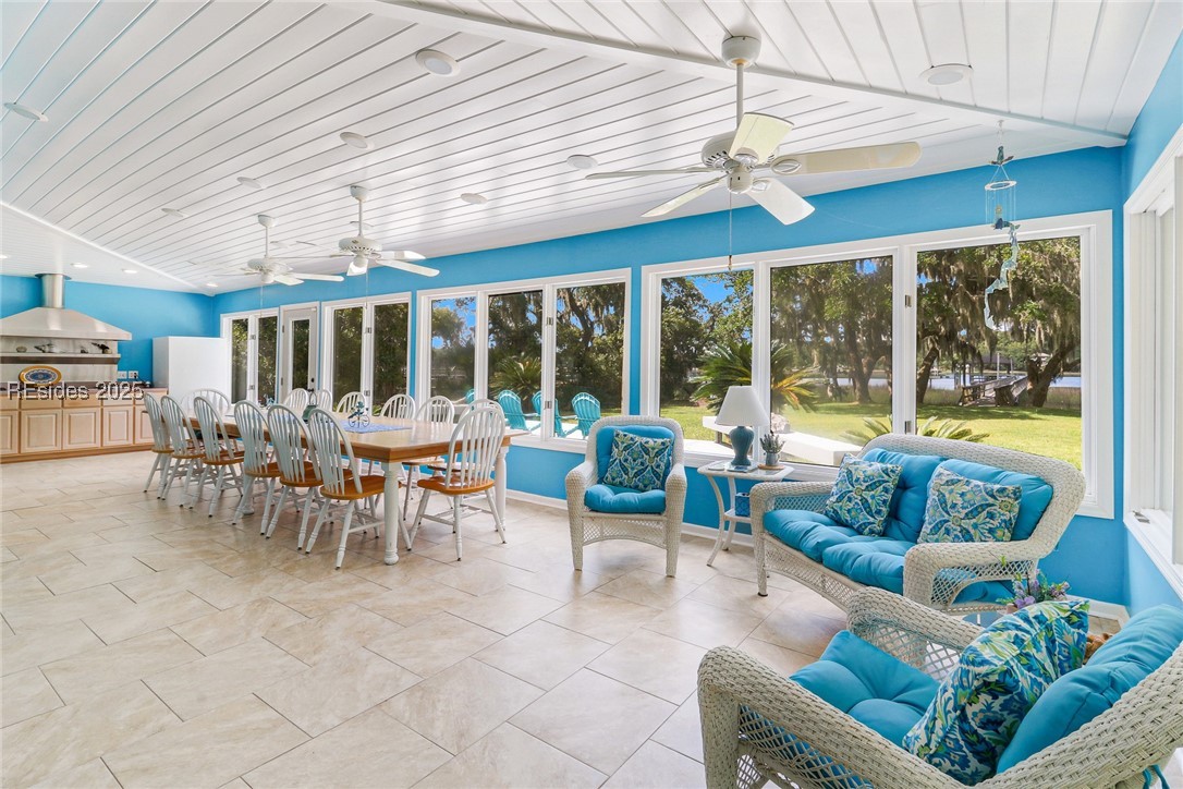 WATERFRONT LIVING! This 4-bed, 2.5-bath Deloss Point home offers 2,966 sq ft on a 3/4-acre lot. Enjoy an updated kitchen with stainless appliances, sleek counters, and plenty of storage. Multiple living areas and a cozy Carolina room provide space to relax with serene views. Outside, a private deep water dock with boat lift and covered pier leads to Boyd Creek and the Broad River. The seawall adds protection, and a detached shed offers extra storage. You can move right in to this beautifully FURNISHED home. Peaceful, private, and conveniently located--don't miss this Lowcountry gem!